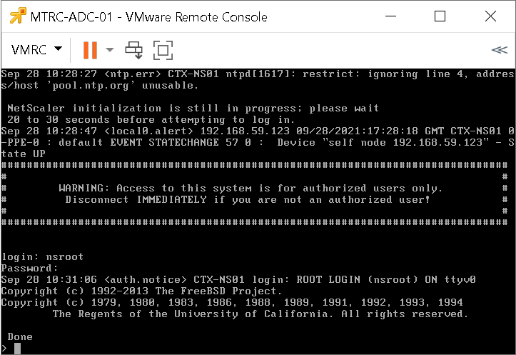 - Authenticate on your VPX.