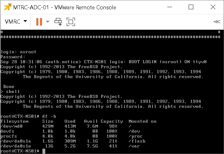 - Reboot your ADC, connect and go in Shell.
