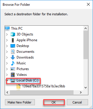 - I do not know why but the proposed folder for the installation is incorrect, click on Browse