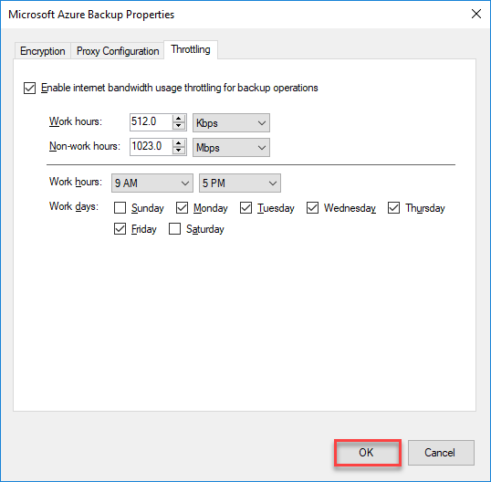 - Check the box Enable internet bandwidth usage throttling for backup operations.