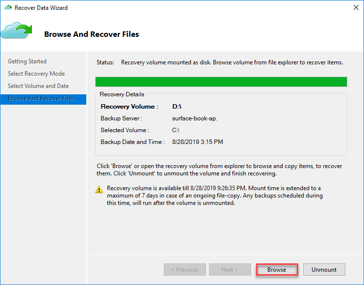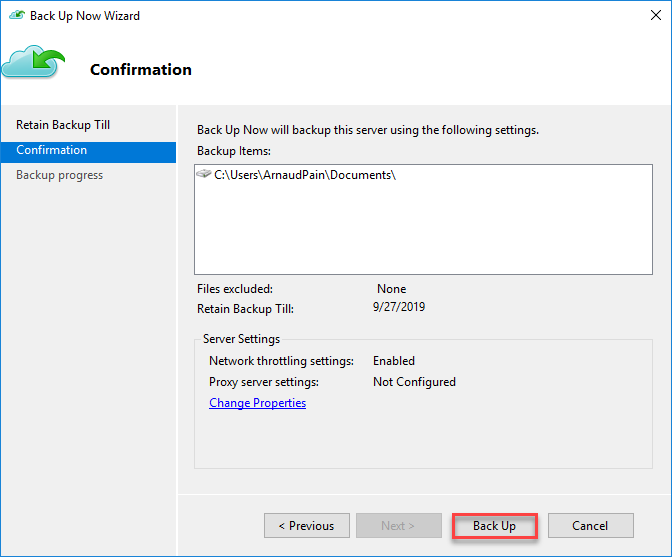 - In the MARS agent, click Back Up Now. This kicks off the initial replication over the network.