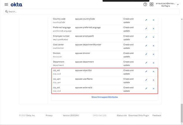 • Edit attribute mappings for the application: