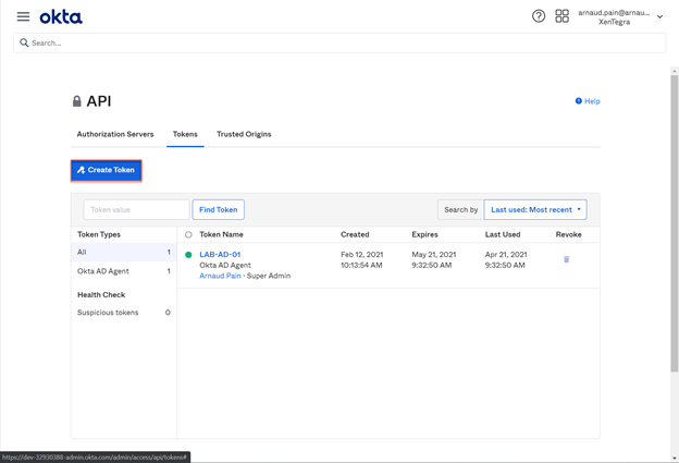 To create the API token, see Create an Okta API token in this article. For more information about API tokens, see Create an API Token on the Okta website.