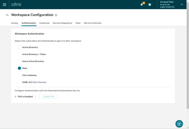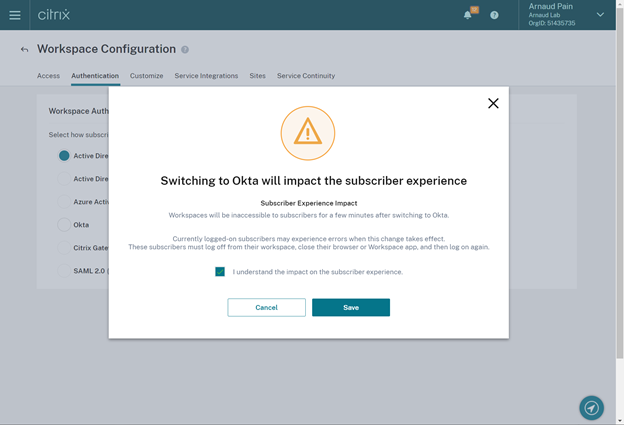 3. Citrix Cloud Okta connection
